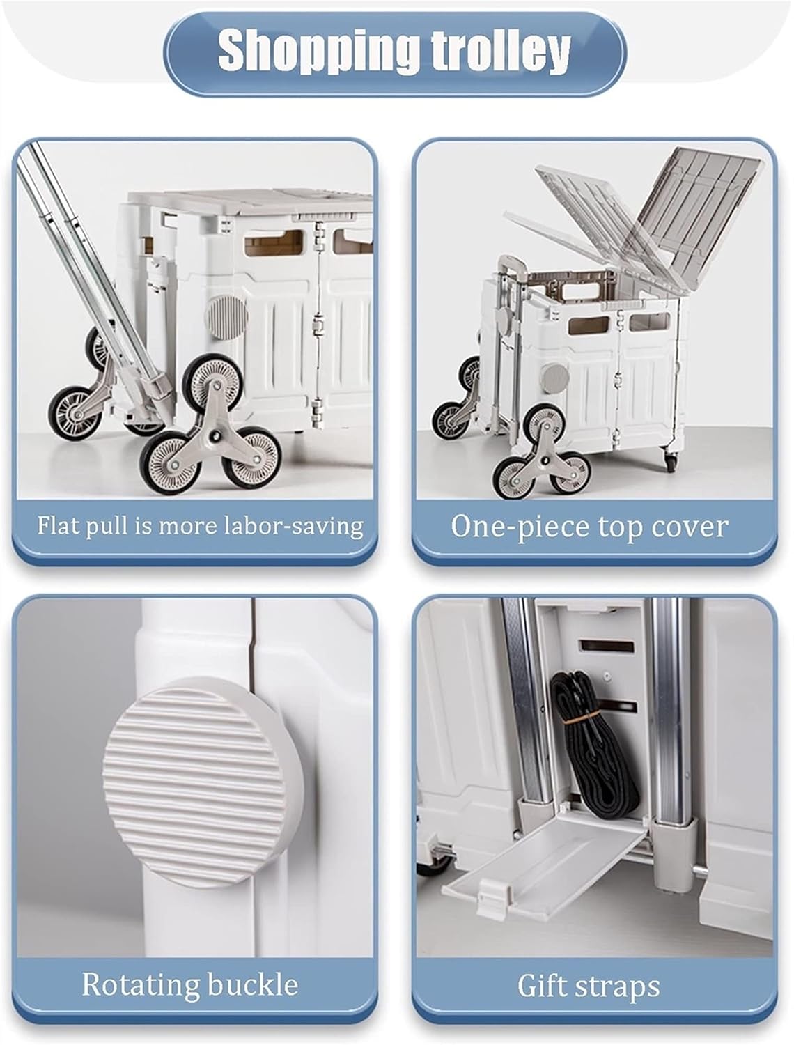 صُممت عربة التسوق القابلة للطي عالية الجودة هذه لتوفر الراحة والمتانة وتعدد الاستخدامات. مصنوعة من مادة ABS الصديقة للبيئة، وتتميز بقوة تحمل مذهلة تصل إلى 40 كجم في الوضع الديناميكي و80 كجم عند الثبات. تصميمها المدمج والقابل للطي يُسهّل تخزينها في صناديق السيارات أو غرف النوم أو الكراجات. مزودة بقضيب سحب عالي القوة من سبائك الألومنيوم قابل للسحب، وقابل للتعديل ليناسب جميع الأعمار. يتميز نظام العجلات الثماني بعجلات مقاومة للتآكل وصامتة مع دوران أمامي 360 درجة وعجلات خلفية تنزلق بسلاسة على السلالم والأسطح الخشنة. كما تحتوي العربة على غطاء متعدد الوظائف يمكن استخدامه كطاولة أو كرسي أو مسند للقدمين، مما يزيد من عمليتها. سواء كنت تتسوق أو تسافر أو تنظم أغراضك، فهذه العربة رفيق ذكي وموفر للمساحة.