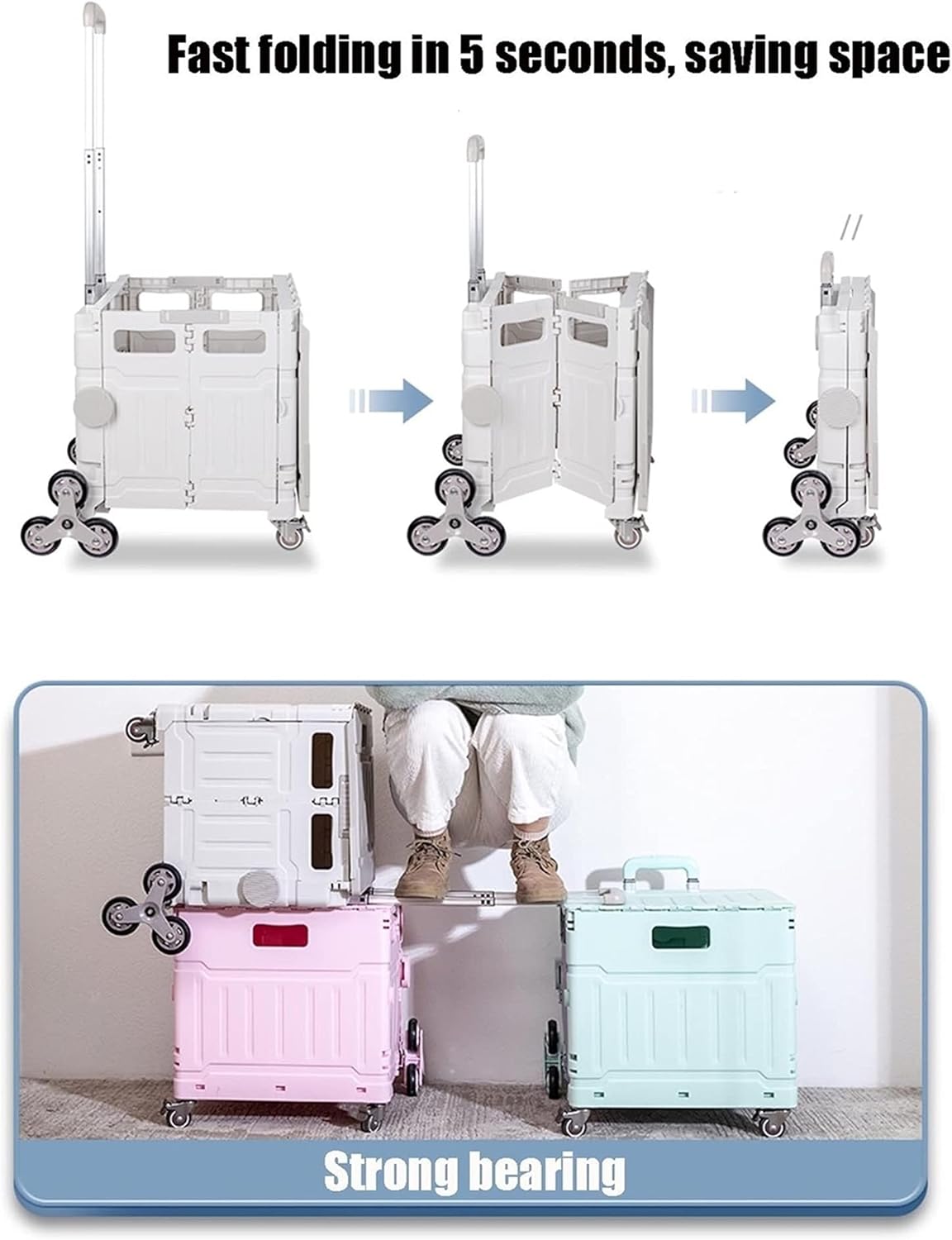 عربة قابلة للطي مع عجلات لتسلق السلالم، عربة قابلة للطي مع عجلات
