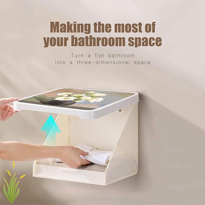 صندوق تخزين قابل للطي للحمام، رفوف حمام مثبتة على الحائط