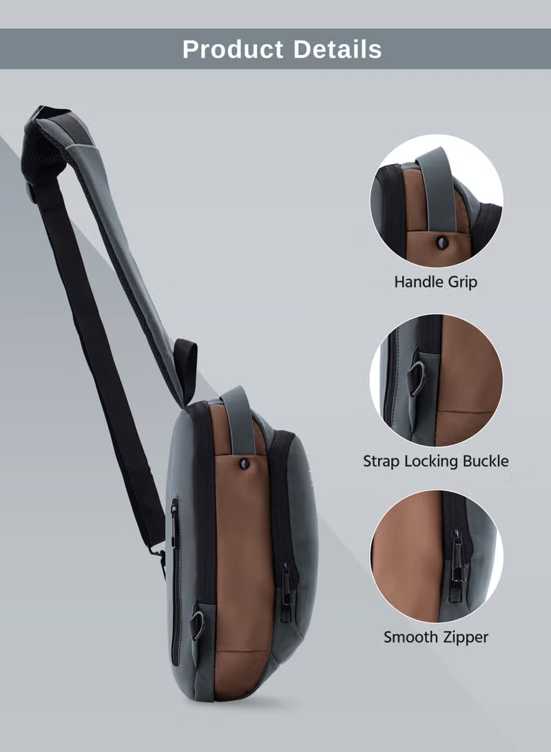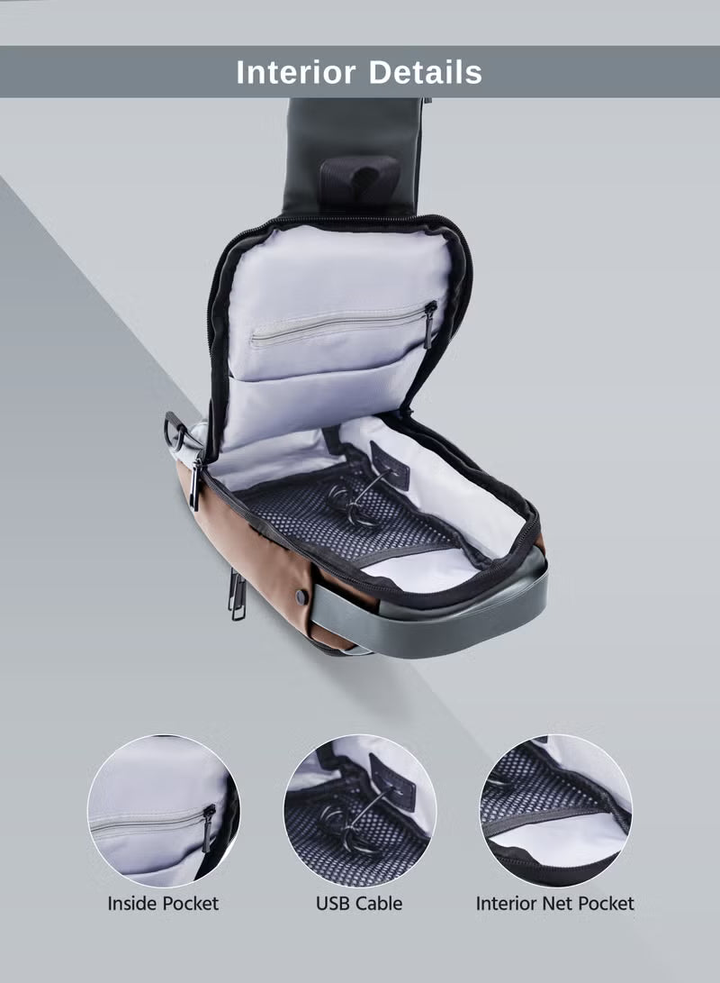 A compact and secure sling bag with USB charging port, crafted from durable water-resistant fabric — ideal for daily use, travel, or commuting.