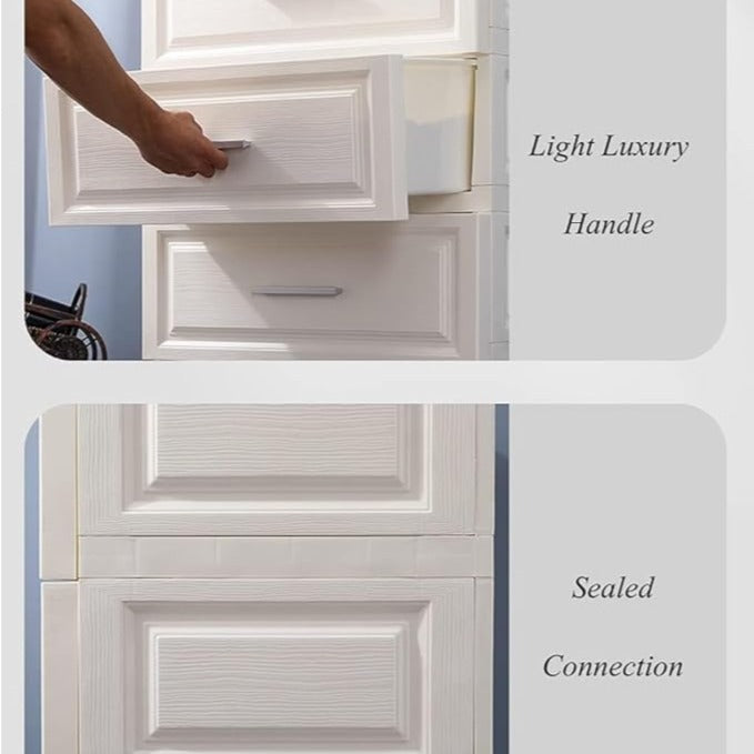 4-tier plastic drawer cabinet with colorful drawers and metallic-finish handles. Lightweight, modern, and practical — ideal for keeping your essentials organized in any room.