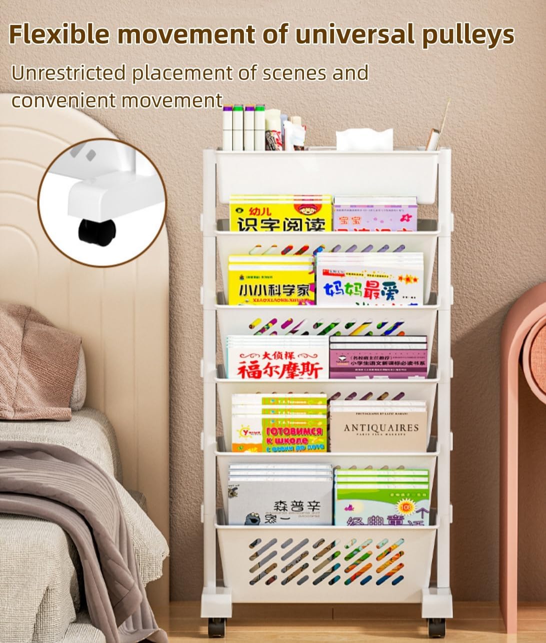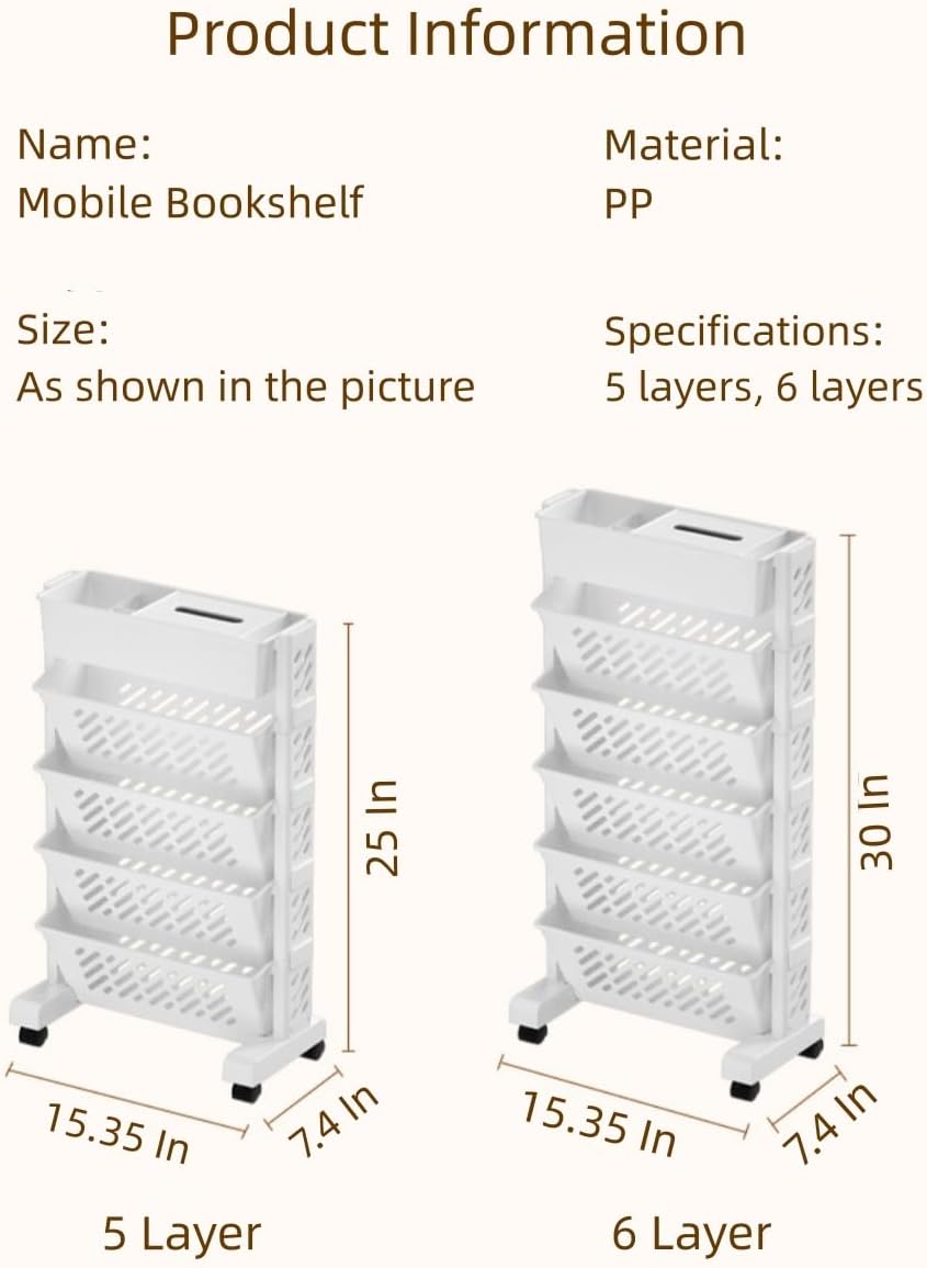 Rolling Book Shelf, Slim File Organizer with Wheels