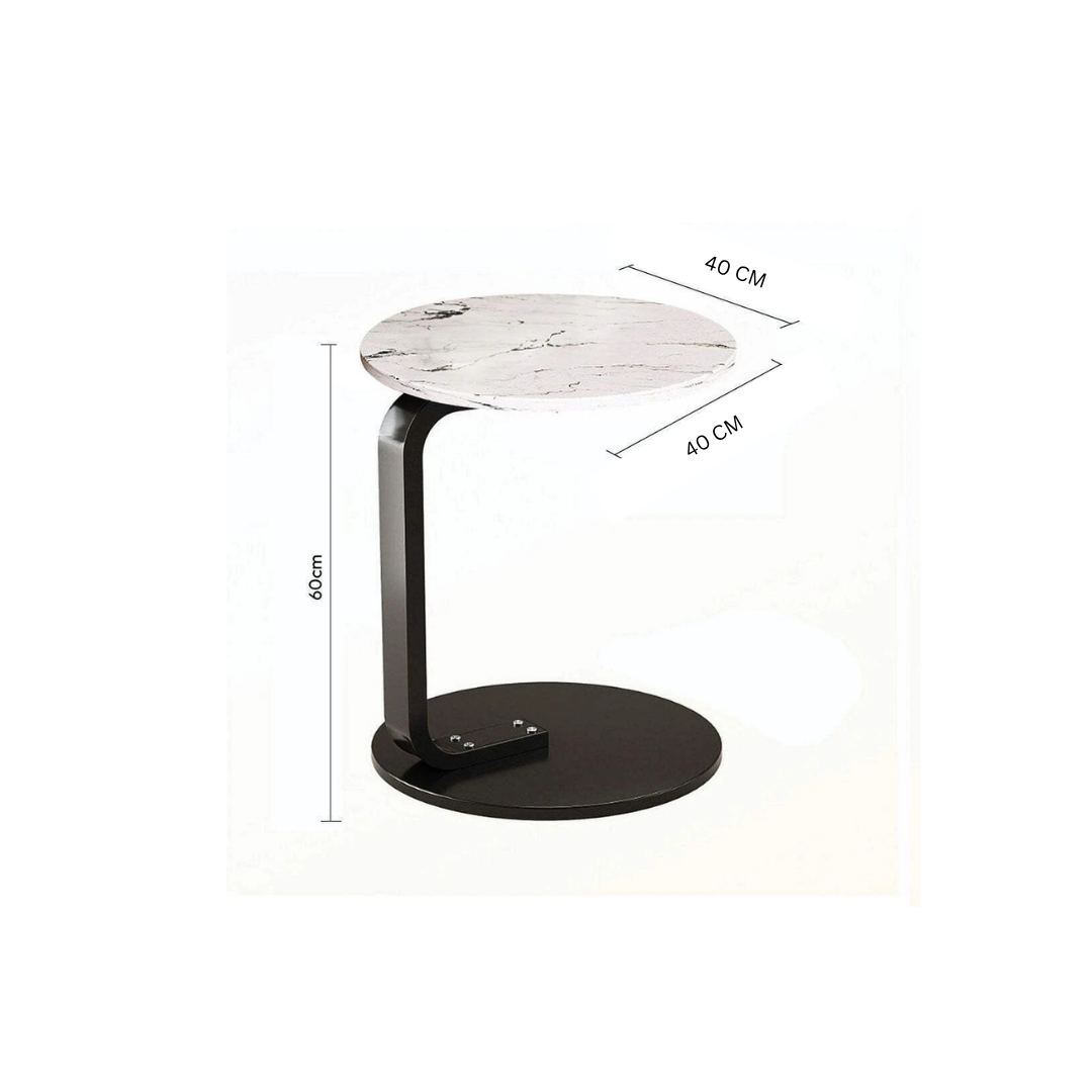 This stylish round coffee table combines a wooden top with a sturdy steel base, offering a sleek and space-saving solution for your living room. Its modern C-shaped design easily slides under sofas or chairs, making it perfect for holding drinks, books, or décor items.