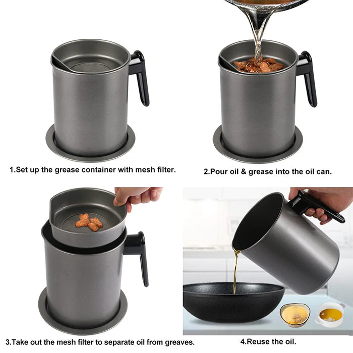 ✅ 3-in-1 Functionality – Filters food particles, stores cooking oil, and allows safe reuse, helping reduce waste and save money.