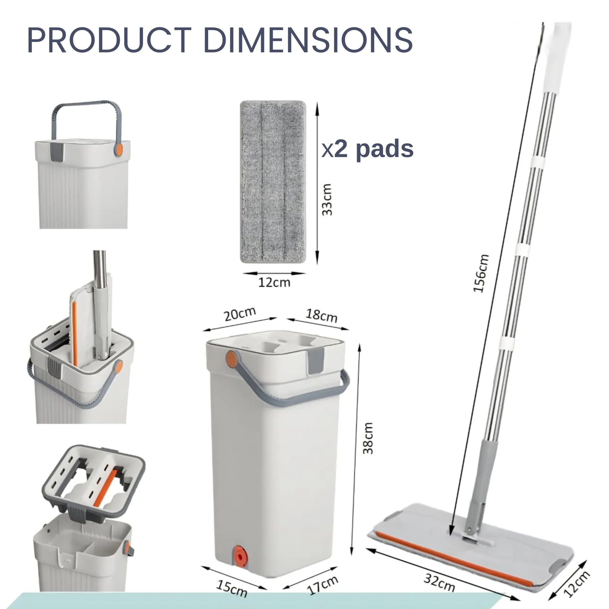 Simplify your cleaning routine with this efficient floor mop and bucket set. Designed for convenience, it includes 2 reusable pads and a compact bucket for hassle-free cleaning and storage.
