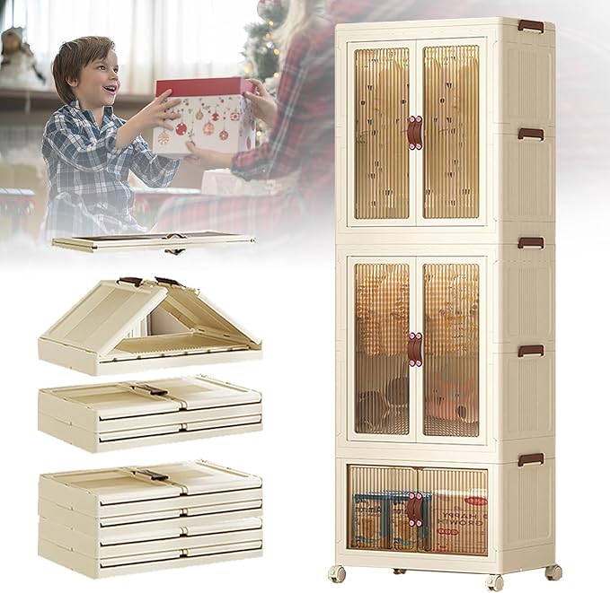Spacious Storage Options: Features both a hanging area and small cubes for clothes, toys, and books.