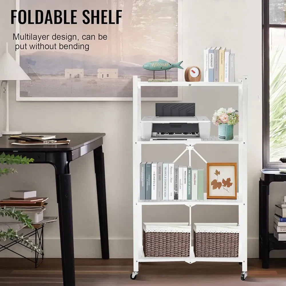 4 Layer Foldable Trolley Rack, Kitchen Storage Rack with Wheels