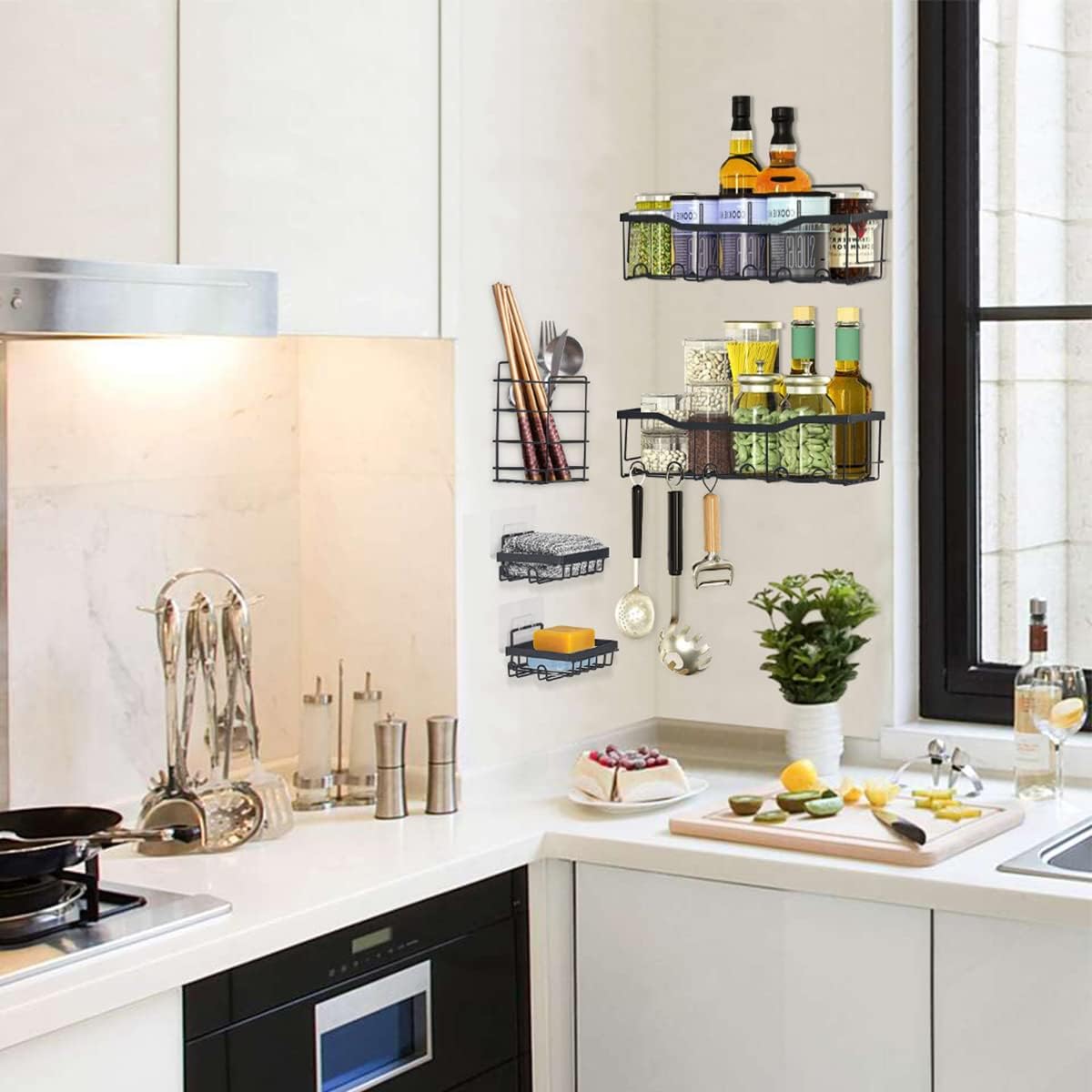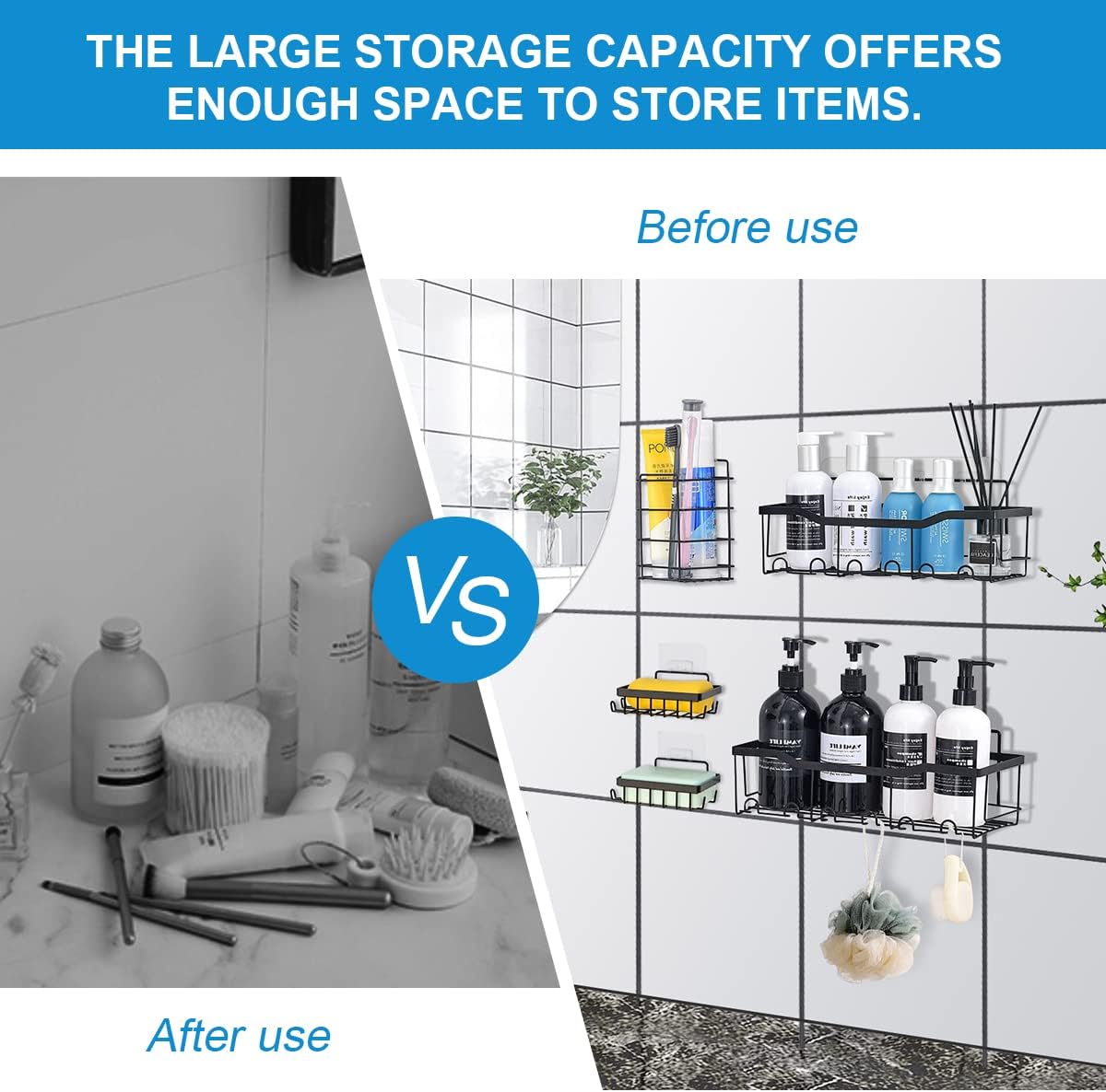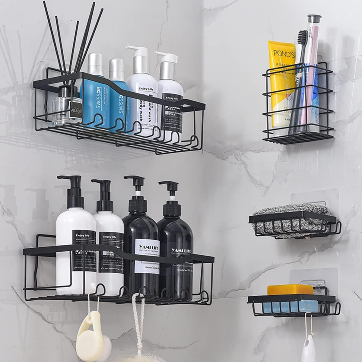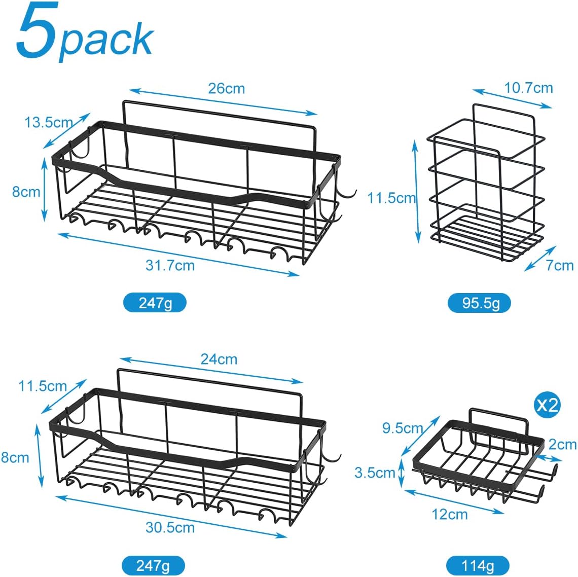 Rust-Proof 5-Pack Shower Caddy Set, 5-Piece Adhesive Shower Caddy Set – Stainless Steel
