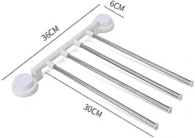 This wall-mounted swivel towel rack features four 180° rotatable arms and two strong suction cups for secure, damage-free installation. Made from durable ABS and stainless steel, it helps keep towels and clothes organized without drilling. The non-slip caps at the end of each arm prevent towels from falling, while the foldable design saves space when not in use. Ideal for bathrooms, kitchens, or utility areas—hang wet and dry towels separately and keep your space neat and tidy.